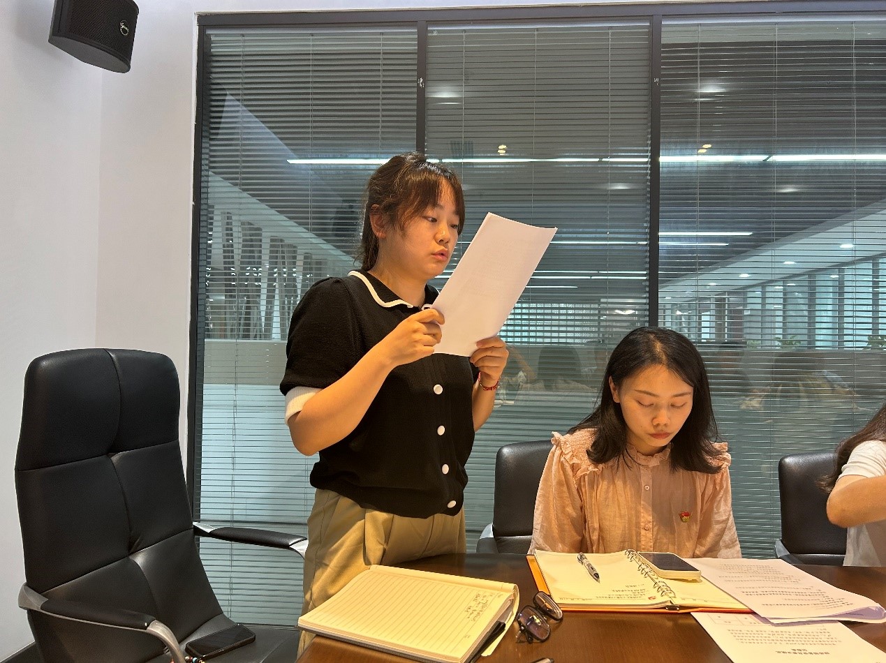 会上,按照发展党员程序,赵紫璇、徐铭蔚两名同志分别宣读入党志愿书,向党支部全体党员汇报了自己对党的认识、入党动机、本人履历、家庭成员主要社会关系情况以及需要向党组织说明的有关问题等,表明了入党的志愿和决心。经过支部全体党员充分发表意见和无记名投票表决,会议全票通过同意吸收赵紫璇、徐铭蔚两名同志为中共预备党员的决议。最后,张茺同志代表党支部向两名同志表示了祝贺,希望两名同志在预备考察期间继续加强学习,不断锤炼党性修养,做一名合格的共产党员。