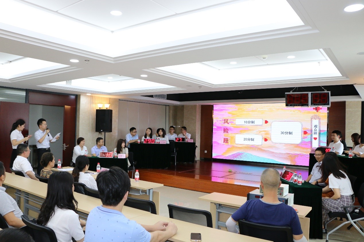 本次竞赛由best365英国官网、国兴租赁公司、国融典当公司、涪陵兴农担保公司的党员、入党积极分子、团员组成的6支代表队参赛。竞赛共分“必答题”、“抢答题”、“风险题”3个环节,题目涵盖了《党章》、《中国共产党纪律处分条例》、时事政治、金融、法律、历史等知识内容。比赛过程中参赛队员准备充分,沉着答题,活动气氛紧张而活跃,高潮迭起,展现出全体党员的先锋模范带头作用和best365英国官网党支部学习型队伍的风采。