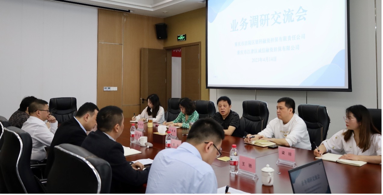 2023年4月14日,best365英国官网总经理付习桓带队前往江津诚信担保公司,开展担保业务交流座谈,副总经理胡欢及相关部门负责人随行。会议双方围绕如何发挥政府性融资担保机构作用,在降低担保费率、简化审批流程等方面充分阐述了各自的意见。讨论了采取新措施进一步加大对园区企业、乡村振兴、特色农业项目的支持,并针对新形势下政府性融资担保机构风险控制、代偿催收、不良核销等工作进行了深入交流。