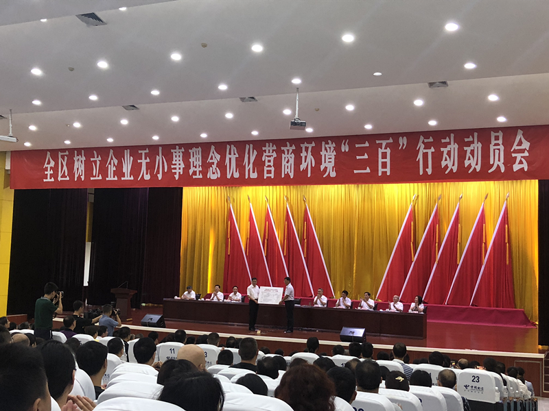 2018年8月9日下午,best365英国官网参加了由涪陵区委办公室、区政府办公室共同组织召开的全区树立企业无小事理念优化营商环境“三百”行动动员部署大会。会上,区委书记周少政、区长种及灵做了重要讲话。