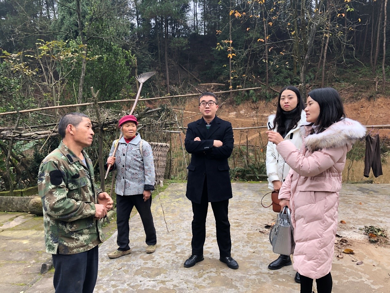 为响应国家“精准扶贫”号召,2019年12月17日,总经理曹译丹同志、项目经理魏小淞、刘萍前往涪陵区大顺乡大田村一组,深入贫困户彭友华家中,对其家庭基本情况、畜牧养殖情况、中药材种植情况等进行了详细了解,并有针对性制定了贷款担保方案,切实做到“因户施策”,帮扶贫困户。